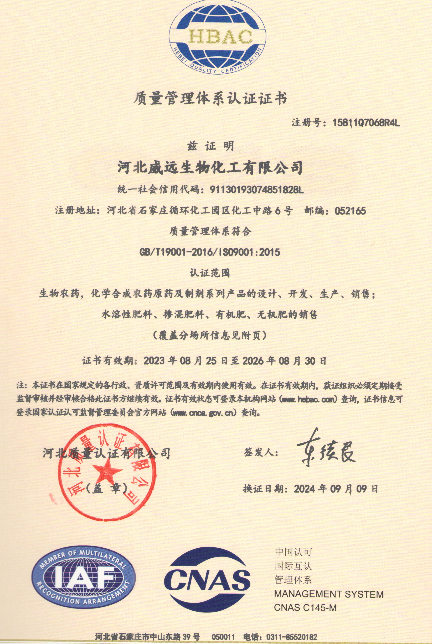 “中國農(nóng)藥、威遠(yuǎn)品質(zhì)”是威遠(yuǎn)生化追求卓越的質(zhì)量理念,“好農(nóng)藥、好產(chǎn)品”是我們的莊嚴(yán)承諾,為客戶提供“老百姓值得用的好藥”是我們永恒的追求。