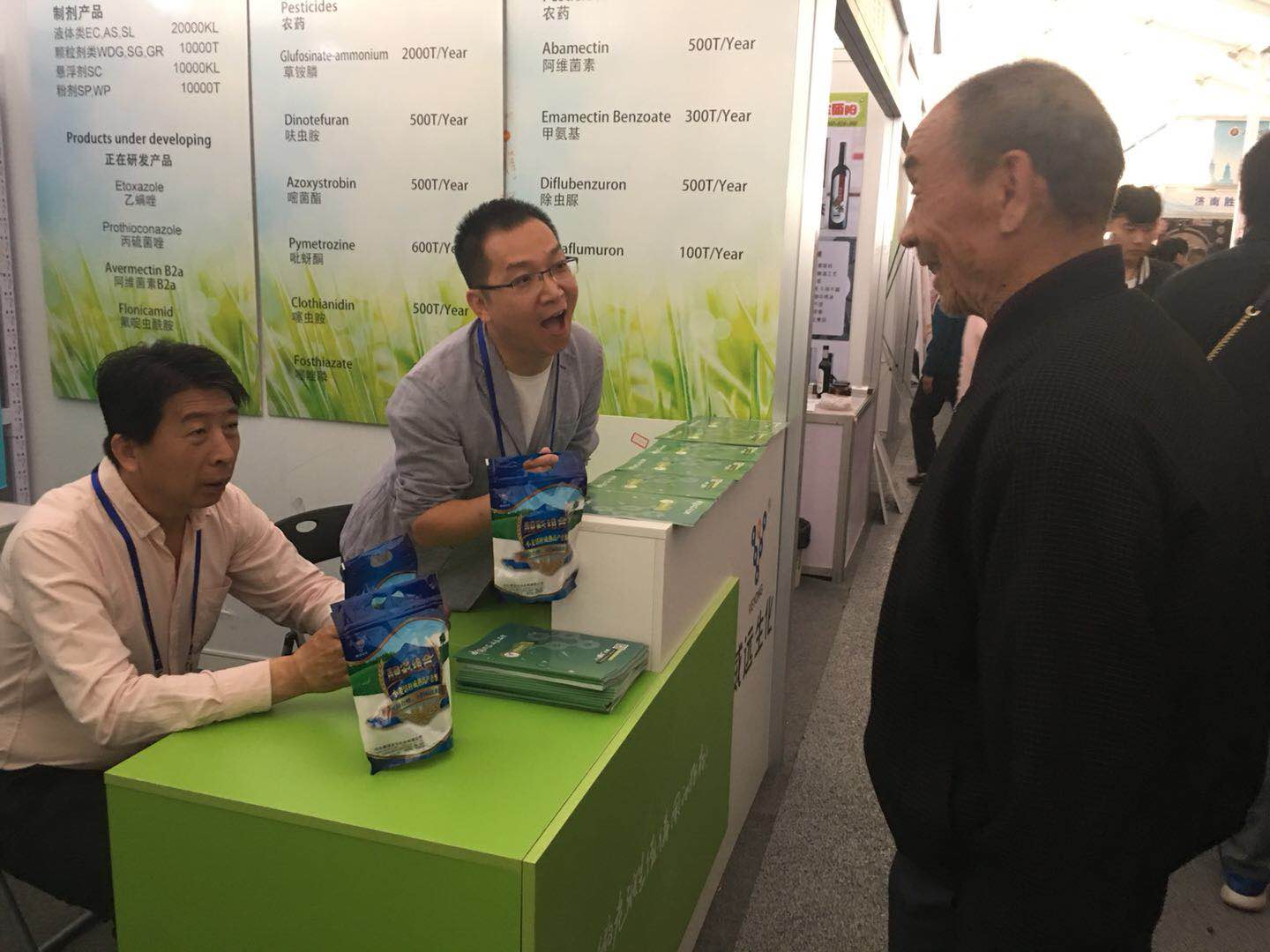 我公司展位位于“名優(yōu)特新產(chǎn)品展區(qū)”,在展會中,展出了我公司殺蟲劑、殺菌劑、除草劑三大系列的多個(gè)知名產(chǎn)品,如草銨膦法姆樂、小麥活桿成熟高產(chǎn)套餐靚彩組合等。