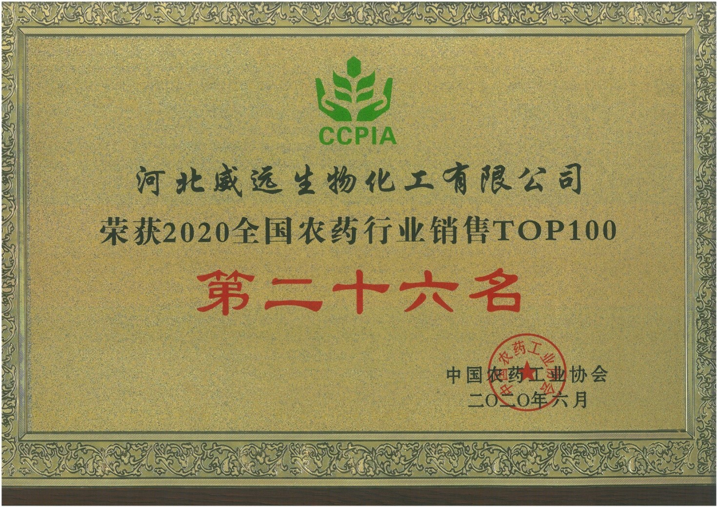 6月10日,由中國農(nóng)藥工業(yè)協(xié)會主辦的第七屆農(nóng)藥行業(yè)經(jīng)濟運行分析會暨農(nóng)藥行業(yè)排行榜發(fā)布會順利召開,2020全國農(nóng)藥行業(yè)銷售TOP100在上隆重揭曉。我公司河北威遠(yuǎn)生物化工有限公司穩(wěn)扎穩(wěn)打,以19.6億的銷售額排名第二十六位,較上年排名上升2名。