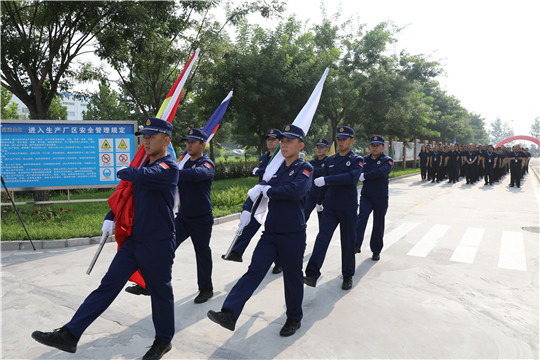 上午8點16分,在威遠生化綜合廣場,一場隆重的升旗儀式拉開了慶典活動帷幕,公司黨委書記李立華主持升旗儀式,升旗手護送國旗、司旗入場,全場人行注目禮,隨著高亢的國歌聲,三面旗幟緩緩上升,在朝陽中迎風(fēng)飄揚。