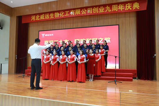 9點,慶典大會正式開始,會議首先全體起立合唱《利民之歌》。威遠(yuǎn)生化副總經(jīng)理高軍從主持會議??偨?jīng)理李立華作慶典致辭,致辭中回顧了二次創(chuàng)業(yè)九年、搬遷十年來的創(chuàng)業(yè)歷程,向威遠(yuǎn)生化發(fā)展做出貢獻(xiàn)的前輩,以及搬遷十年來為之奮斗的全體員工表示衷心的感謝!總結(jié)了取得的卓越成就,明確了企業(yè)發(fā)展戰(zhàn)略和未來方向。李總講到:今天我們站在威遠(yuǎn)生化歷史新的起點上,展望未來,危機(jī)與挑戰(zhàn)并存。我相信,能打硬仗的威遠(yuǎn)團(tuán)隊能戰(zhàn)勝任何困難,秉承威遠(yuǎn)精神,踐行利民文化,力爭超額完成年度目標(biāo),積極推進(jìn)落實公司五年規(guī)劃藍(lán)圖。
