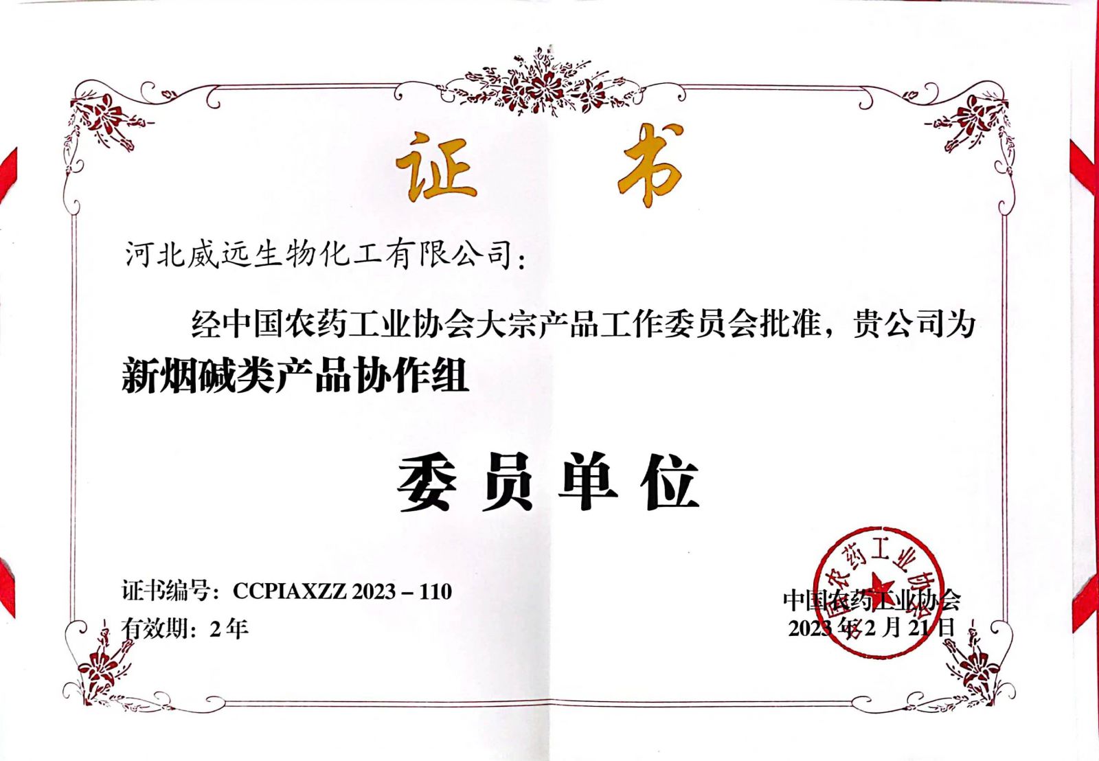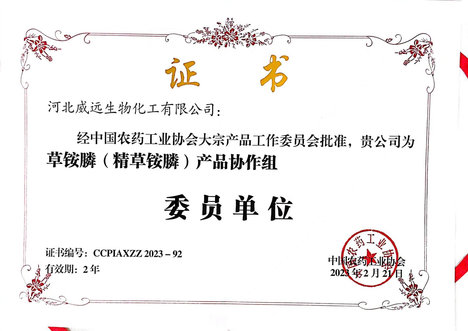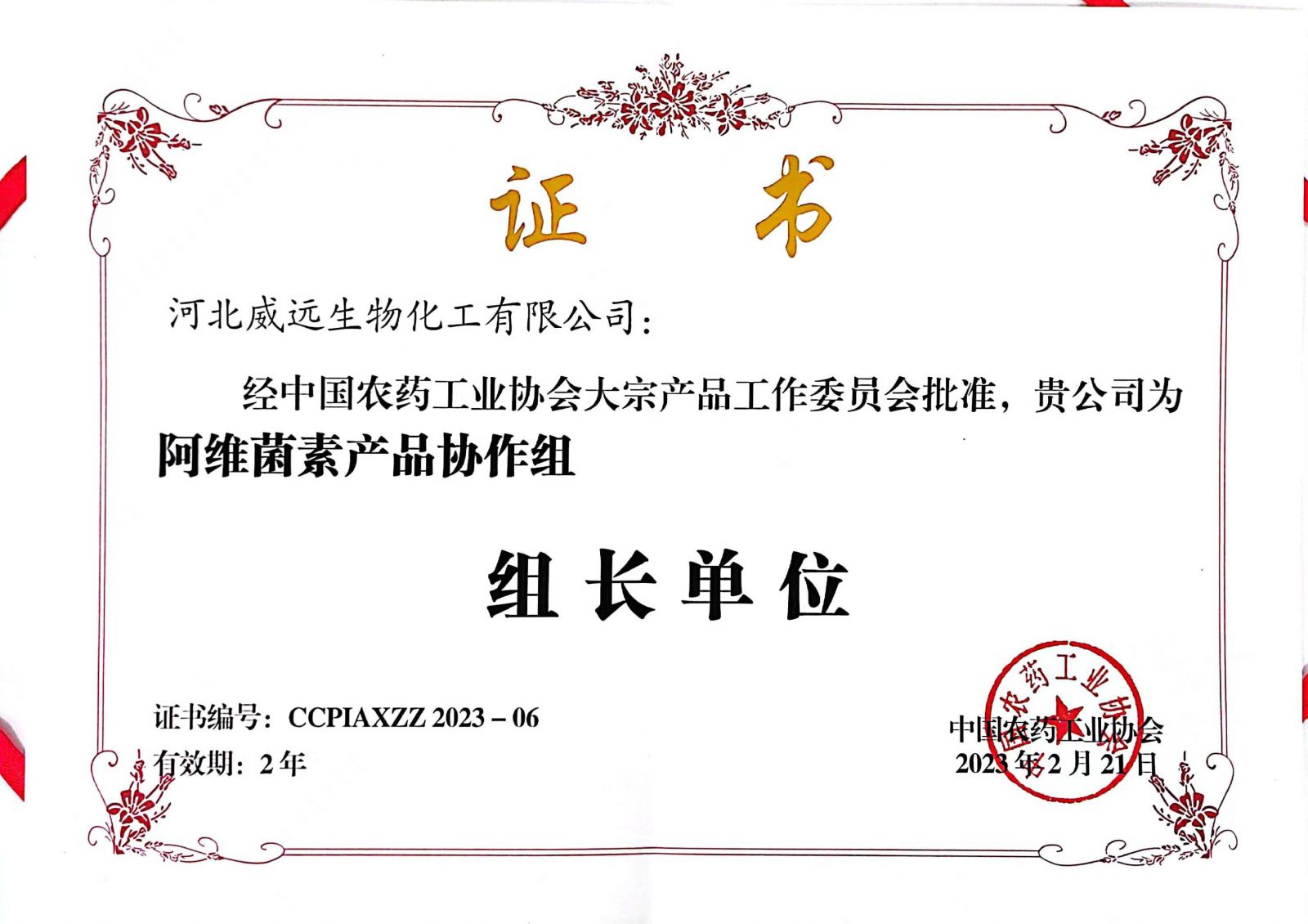 近日,中國(guó)農(nóng)藥工業(yè)協(xié)會(huì)大宗產(chǎn)品工作委員會(huì)、生物技術(shù)專業(yè)委員會(huì)于山東青島成立,同時(shí)召開第一屆工作委員會(huì)年會(huì)。中國(guó)農(nóng)藥工業(yè)協(xié)會(huì)大宗產(chǎn)品工作委員會(huì)授予河北威遠(yuǎn)生物化工有限公司“阿維菌素產(chǎn)品協(xié)作組組長(zhǎng)單位”、“草銨膦(精草銨膦)產(chǎn)品協(xié)作組委員單位”、“新煙堿類產(chǎn)品協(xié)作組委員單位”。